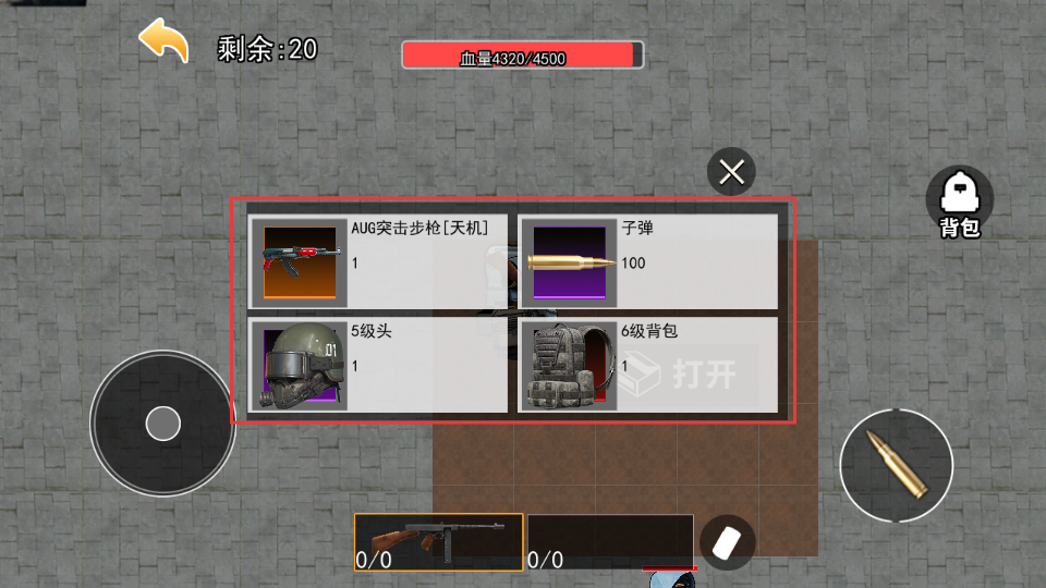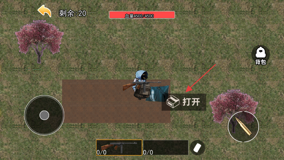 2、在游戲場景中移動到箱子旁,點(diǎn)擊【打開】獲取物資,收集【子彈】補(bǔ)充彈藥,提升戰(zhàn)斗續(xù)航能力。