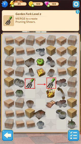 2、將匹配解謎與合并玩法相結(jié)合,通過組合工具、鮮花等各類物品完成挑戰(zhàn),操作簡單易上手,兼顧趣味性與策略性。