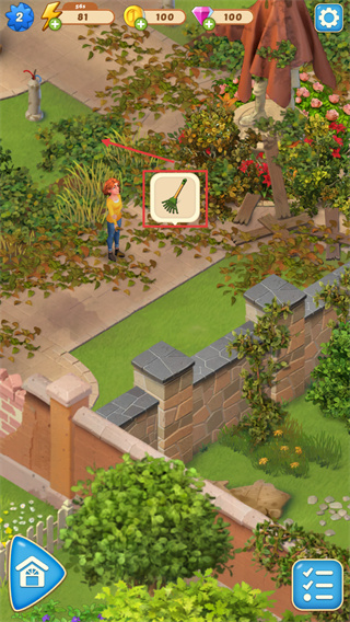 4、獲取【掃把】道具后,用它清理場景中的落葉區(qū)域,整理地面環(huán)境,為后續(xù)的場景建設(shè)或互動創(chuàng)造條件。