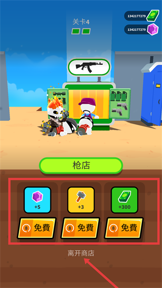 4、路過(guò)槍店,記得領(lǐng)取【免費(fèi)】的寶石和金幣,用來(lái)升級(jí)裝備或角色,闖關(guān)更輕松啦。