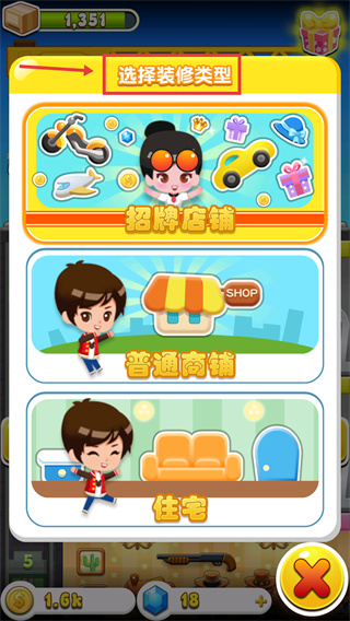 2、優(yōu)先選擇【普通商鋪】作為初始裝修類(lèi)型,其門(mén)檻低、收益穩(wěn)定,適合新手積累初始資源。