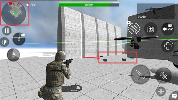 1、戰(zhàn)斗中借助小地圖掌握戰(zhàn)場位置,收集場景內(nèi)的補(bǔ)給箱補(bǔ)充資源,同時利用己方無人機(jī)的支援火力,協(xié)同推進(jìn)關(guān)卡進(jìn)程。
