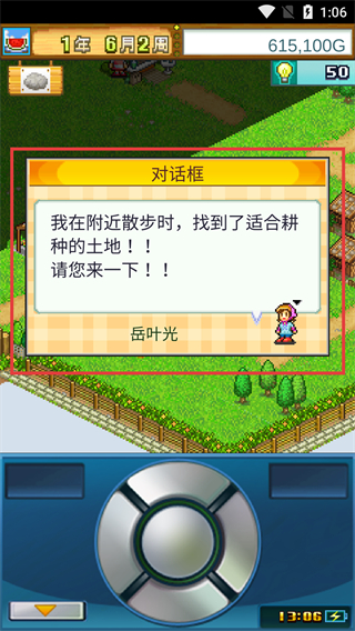 1、留意【對(duì)話(huà)框】中【岳葉光】的提示,其會(huì)告知找到可耕種土地的信息,需及時(shí)響應(yīng)以推進(jìn)土地拓展流程。