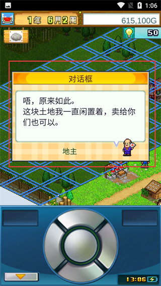 2、在【對(duì)話(huà)框】中與【地主】交互,其會(huì)提出閑置土地售賣(mài)的提議,這是獲取新土地的關(guān)鍵觸發(fā)環(huán)節(jié)。