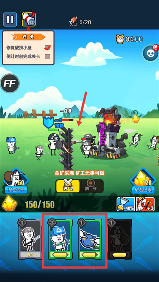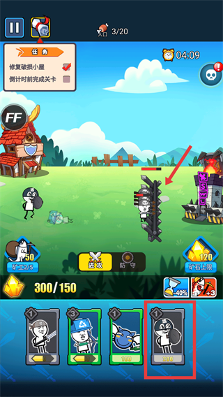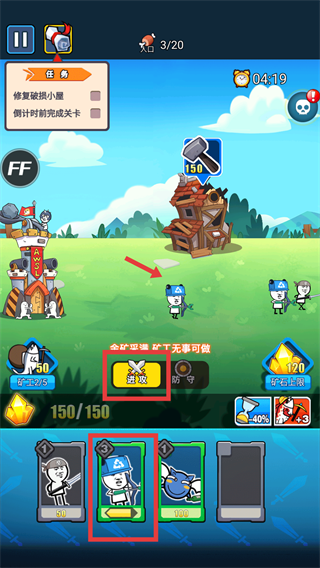 3、遇到敵方基地的【柵欄】防御時(shí),派出【盾兵】在前方抵擋傷害,為后續(xù)兵種推進(jìn)創(chuàng)造有利條件啦。