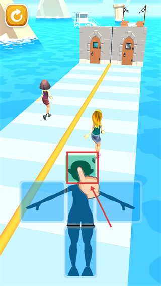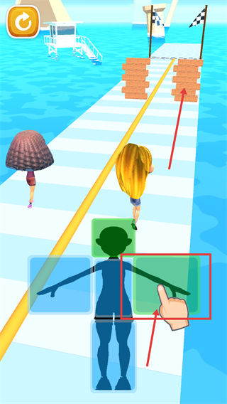 3、遇到賽道中的磚塊障礙時(shí),繼續(xù)點(diǎn)擊身體部位模塊(如手臂)完成收集,借助擴(kuò)展后的體型快速通過(guò)障礙區(qū)域。