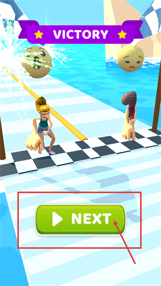 4、通關(guān)后界面會(huì)顯示【VICTORY】提示,點(diǎn)擊標(biāo)注的【NEXT】按鈕,即可進(jìn)入下一個(gè)關(guān)卡,繼續(xù)挑戰(zhàn)更復(fù)雜的賽道。