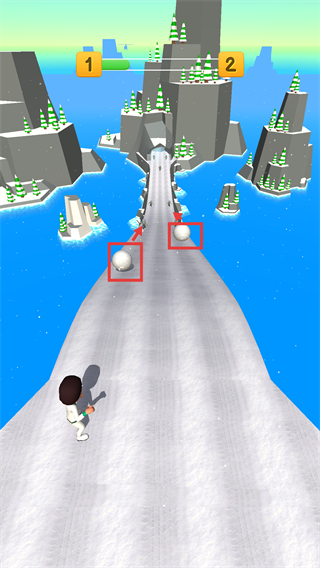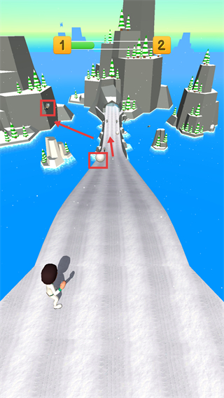 3、靠近路徑上的【白色球體】,通過(guò)操作擊倒它們,同時(shí)留意上方的進(jìn)度條,積累道具推進(jìn)關(guān)卡。