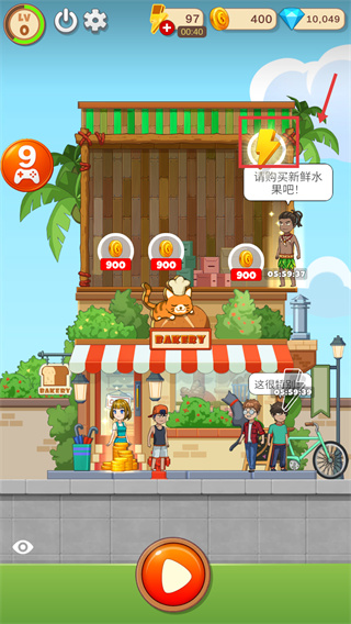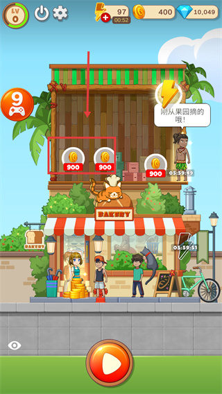 3、在【BAKERY】店鋪界面,點擊標注的【900-金幣】標識,獲取對應資源,用于后續(xù)店鋪升級或物品解鎖。