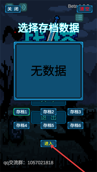 2、進(jìn)入【選擇存檔數(shù)據(jù)】界面,當(dāng)前顯示無數(shù)據(jù),選定存檔后點(diǎn)擊【進(jìn)入】按鈕,即可進(jìn)入游戲初始關(guān)卡。