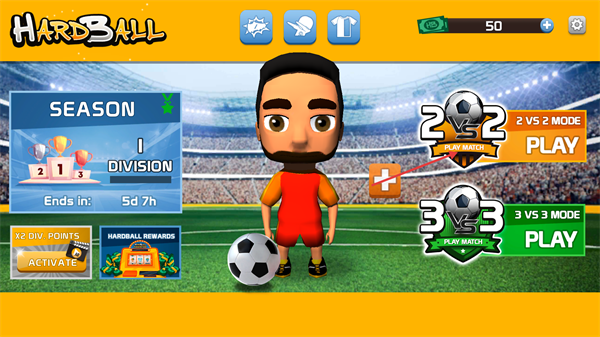 2、主界面顯示【SEASON】與【2VS2-MODE】【3VS3-MODE】選項(xiàng),點(diǎn)擊對應(yīng)模式的【PLAY】按鈕,即可開啟對應(yīng)賽事。
