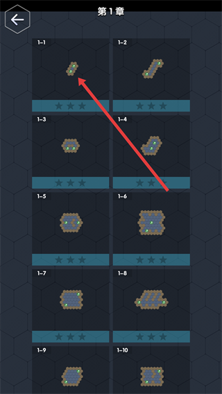 2、進入第1章的關(guān)卡列表界面,選擇“1-1”關(guān)卡,進入該關(guān)卡的游戲操作界面。