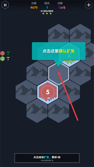 4、在擴張流程中,點擊目標地塊,完成“確認擴張”的操作,推進該關(guān)卡的進程。
