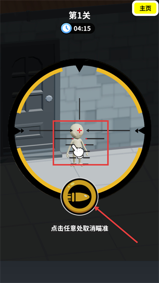 3、瞄準(zhǔn)界面中鎖定外星人后,點擊下方的【子彈按鈕】完成射擊,若需調(diào)整可點擊任意處取消瞄準(zhǔn)狀態(tài)。