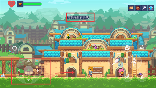 1、按照提示【接下來向右走吧】操控角色向右移動(dòng),前往新區(qū)域,推進(jìn)場景探索與劇情流程。