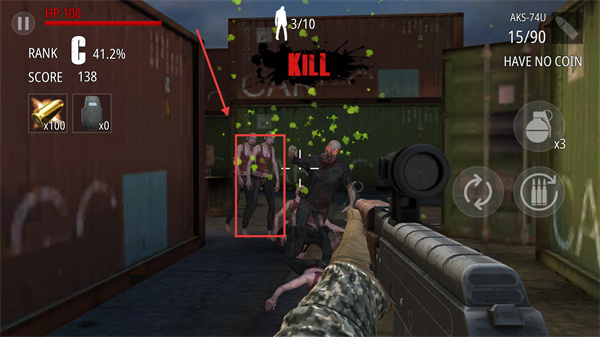 2、戰(zhàn)斗中使用【AKS-74U】武器,面對集群敵人時精準射擊,同時留意【3/10】的擊殺進度推進關卡。