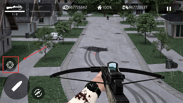 1、戰(zhàn)斗中點(diǎn)擊左側(cè)瞄準(zhǔn)按鈕鎖定目標(biāo),可精準(zhǔn)打擊遠(yuǎn)處敵人。