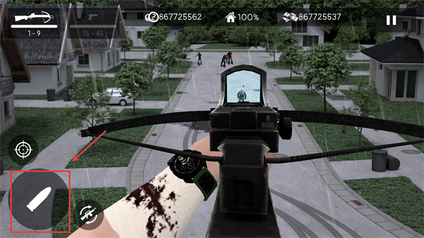 2、點(diǎn)擊左側(cè)發(fā)射按鈕進(jìn)行射擊僵尸,適配不同距離的僵尸,保持輸出節(jié)奏。