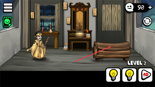 1、進(jìn)入場(chǎng)景,關(guān)注箭頭指向的【棺材】,可借助底部【道具】或【燈泡提示】功能,推進(jìn)當(dāng)前關(guān)卡的互動(dòng)流程。