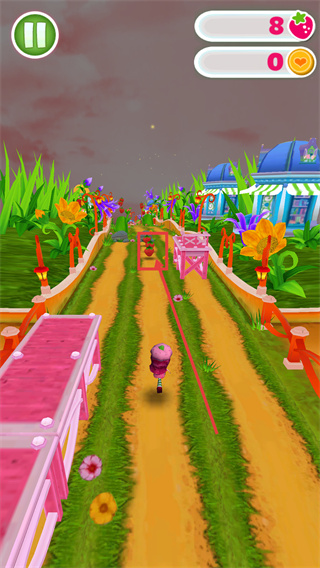3、持續(xù)操控角色,適應(yīng)場景變化,收集更多【草莓-愛心】,提升收集數(shù)量與分數(shù),保持跑酷節(jié)奏以延長挑戰(zhàn)時長。