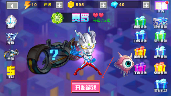 1、選擇【賽羅】角色后點(diǎn)擊【開(kāi)始游戲】進(jìn)入關(guān)卡。
