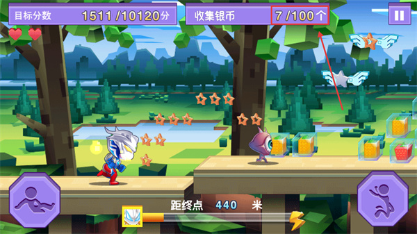 2、關(guān)卡中需收集【7/100-個(gè)】銀幣,沿賽道前進(jìn)時(shí)盡量拾取道具提升進(jìn)度。