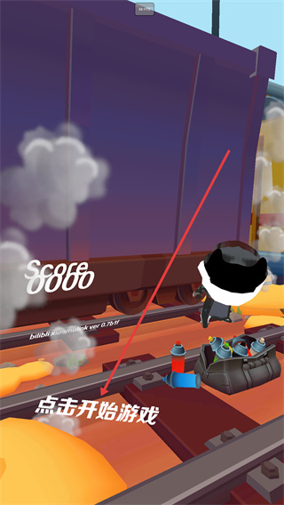 1、進(jìn)入游戲啟動(dòng)界面,點(diǎn)擊“點(diǎn)擊開(kāi)始游戲”,即可進(jìn)入鐵軌跑酷類玩法,準(zhǔn)備開(kāi)啟挑戰(zhàn)。