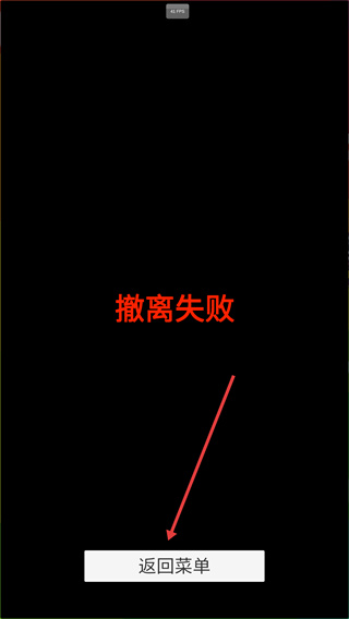 4、若出現(xiàn)“撤離失敗”提示,點(diǎn)擊“返回菜單”按鈕,即可回到游戲主界面,重新開(kāi)啟挑戰(zhàn)。