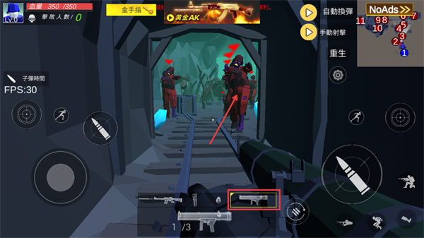 2、戰(zhàn)斗中切換副武器配合【火箭筒】輸出,面對密集敵人時優(yōu)先使用范圍武器。