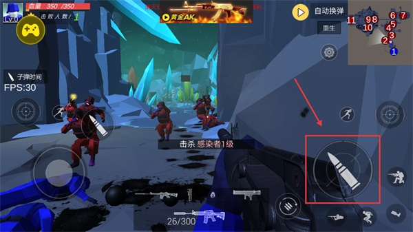 4、遭遇紅色感染者時(shí),點(diǎn)擊開火按鈕攻擊,留意血量狀態(tài),及時(shí)調(diào)整戰(zhàn)斗節(jié)奏。