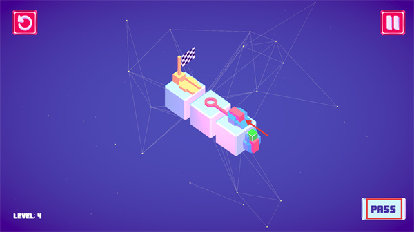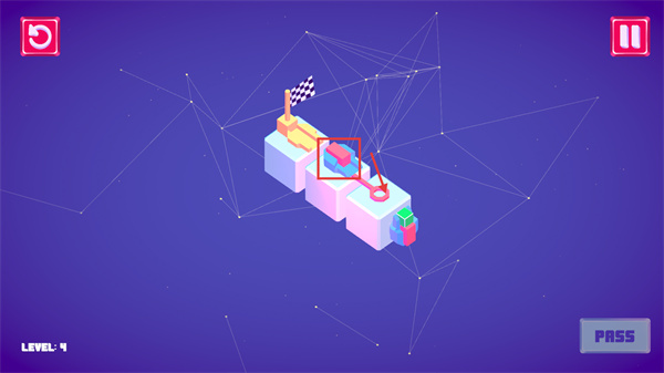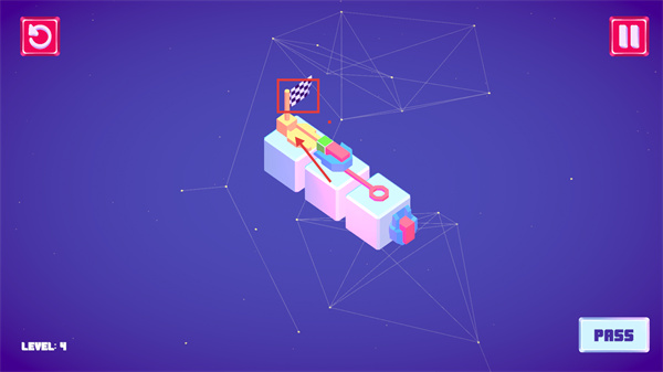 4、操控方塊向【終點旗幟】方向移動,抵達(dá)旗幟位置即可完成關(guān)卡,觸發(fā)【PASS】結(jié)算。