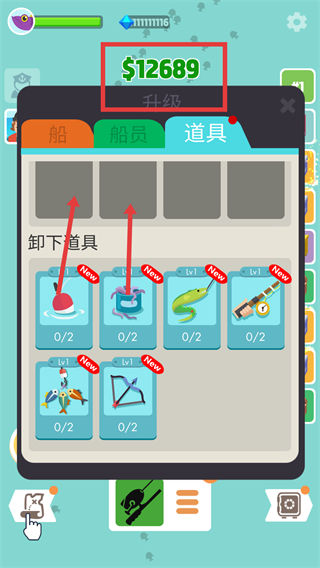3、在道具界面可進行放置新道具的操作,界面展示多款道具可選擇,當前持有【$12689】,合理管理-道具可輔助垂釣進程。