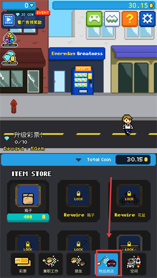 4、打開【物品商店】,消耗400金幣購(gòu)買“箱子”類道具,后續(xù)可解鎖更多物品,豐富游戲玩法。