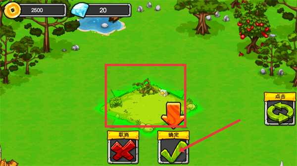 3、在區(qū)域選擇界面,選定綠色標(biāo)識的放置區(qū)域后,點擊下方【確定】按鈕完成恐龍放置,若需調(diào)整可點擊【取消】按鈕重新選擇。