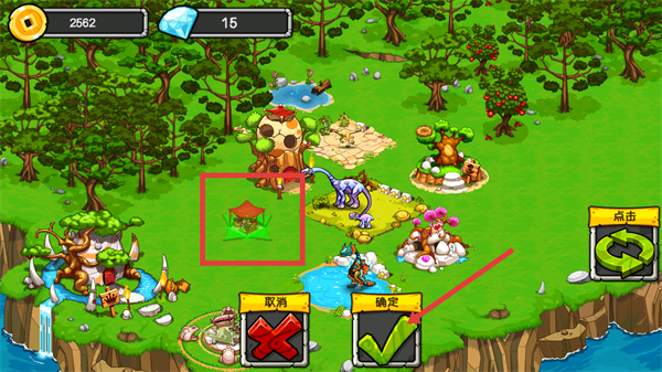 3、選定【蔬菜驛站】的放置區(qū)域后,點(diǎn)擊下方【確定】按鈕完成放置,若位置不合適,可點(diǎn)擊【取消】按鈕重新選擇區(qū)域。