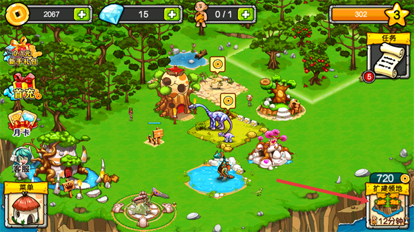 4、點(diǎn)擊界面中的【擴(kuò)展領(lǐng)地】選項(xiàng),等待12分鐘即可完成領(lǐng)地?cái)U(kuò)展,同時(shí)留意資源圖標(biāo),及時(shí)收集已產(chǎn)出的收益。