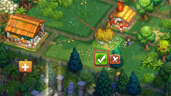 4、在目標(biāo)建筑旁出現(xiàn)【√】-【×】選項(xiàng)時(shí),點(diǎn)擊【√】確認(rèn)操作,可完成建筑相關(guān)的建造或升級(jí)流程。