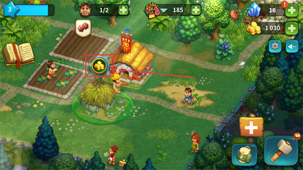 1、點(diǎn)擊帶框的道具圖標(biāo),可收集金幣,推進(jìn)部落建設(shè)流程。