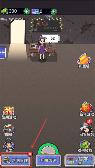 2、在網(wǎng)吧界面中,點(diǎn)擊【網(wǎng)吧管理】可進(jìn)入設(shè)施管理界面,同時(shí)可通過(guò)【招攬客戶(hù)】等功能提升網(wǎng)吧收益。