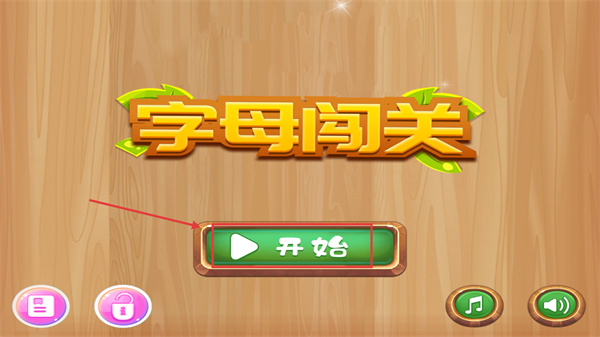1、進(jìn)入【字母闖關(guān)】界面后,點擊【開始】按鈕即可開啟字母拼寫關(guān)卡,進(jìn)入游戲挑戰(zhàn)。