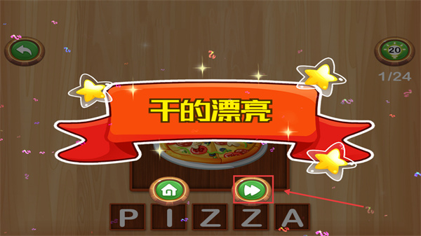 4、看到【干的漂亮】提示后,點擊箭頭按鈕可進(jìn)入下一關(guān),繼續(xù)進(jìn)行字母拼寫挑戰(zhàn)。