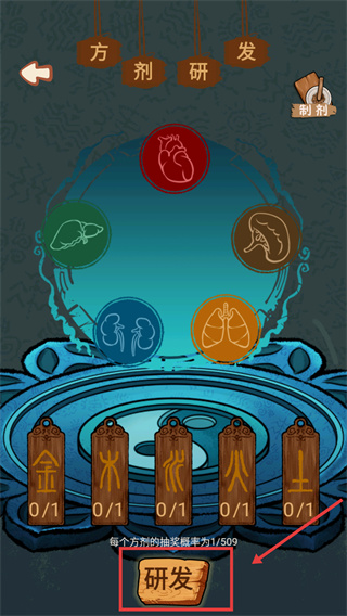 4、在【方劑研發(fā)】界面集齊對應(yīng)材料后點擊【研發(fā)】,解鎖新方劑以拓展游戲玩法和收益渠道。