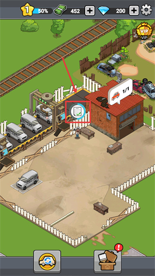 1、點擊界面中的道具圖標(biāo),獲取對應(yīng)的資源或道具,用于推進(jìn)汽車回收與處理的流程。