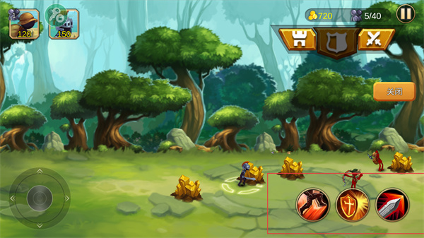 4、戰(zhàn)斗中操控角色移動(dòng),使用下方技能按鈕釋放技能,擊敗敵人后獲取資源,提升隊(duì)伍作戰(zhàn)能力。