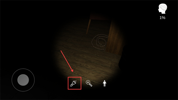 3、處于昏暗場景時,點擊【手電筒】按鈕開啟照明,便于發(fā)現(xiàn)地面的隱藏線索或道具,提升探索效率。
