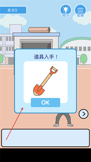 2、獲取【鏟子】道具時,點擊彈窗中的【OK】按鈕確認(rèn)領(lǐng)取,該道具將幫助你后續(xù)執(zhí)行翹課計劃。
