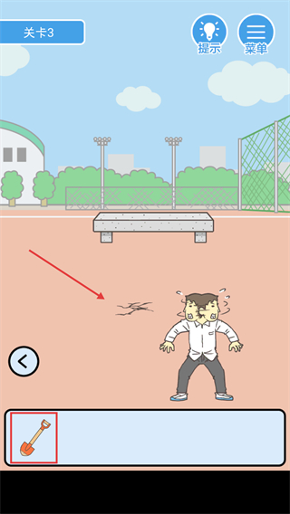 3、在操場場景中,使用底部道具欄的【鏟子】點擊地面裂縫處挖掘,推進(jìn)翹課進(jìn)程。