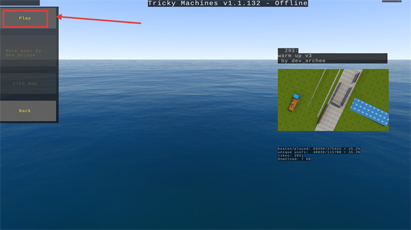 1、在【Tricky-Machines-v1.1.132-Offline】界面中,點(diǎn)擊【Play】按鈕,即可進(jìn)入【warm-up-v3】關(guān)卡開始挑戰(zhàn)。