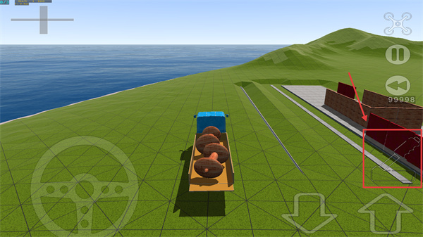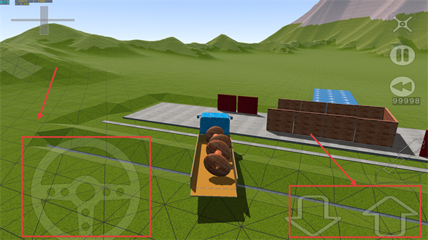 3、利用方向盤按鈕控制載具方向,配合前進(jìn)后退按鈕可以駕駛車輛,平穩(wěn)通過(guò)道路障礙。