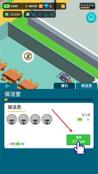 4、在【保潔員】界面中,點擊【雇傭】按鈕,完成保潔員的雇傭操作。